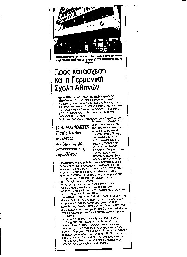 Παράλληλα, ένας άλλος απόφοιτος από τα χρόνια του Πολέμου, ο Γεώργιος Αλέξανδρος Μαγκάκης, ο οποίος συνέδεσε το όνομά του στενά με την Σχολή, όταν ο πρέσβης Peter Limbourg, πατέρας του μαθητή στην ΓΣΑ (με το ίδιο ονοματεπώνυμο) Peter Limbourg, φυγάδευσε τον Γ.Α. Μαγκάκη στην Γερμανία στα χρόνια της Δικτατορίας, έστειλε μία επιστολή για τις κατασχέσεις.