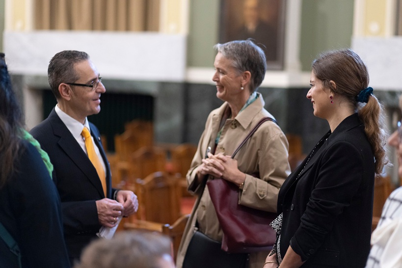Την εκδήλωση χαιρέτισαν η Monika Frank, Γενική Πρόξενος της Ομοσπονδιακής Δημοκρατίας της Γερμανίας στη Θεσσαλονίκη, ο Δρ. Frens Stöckel, Διευθυντής του Τμήματος Δικτύου του DAAD, η Βασιλική (Ρεγγίνα) Φρέντζου, Διευθύντρια της DAAD Ελλάδος, η Καθ. Ελένη Αργυριάδου, ο Καθ. Αθανάσιος Καΐσης και ο Καθ. Νικόλαος Κλαμαρής.Ξεχωριστή στιγμή του πρώτου μέρους ήταν η εμπνευσμένη εορταστική ομιλία του Καθ. Δρ. Δρ. h.c. mult. Βασιλείου Σκουρή, πρώην Προέδρου του Ευρωπαϊκού Δικαστηρίου, υπότροφου της DAAD και PASCH-Alumni της Γερμανικής Σχολής Θεσσαλονίκης – Deutsche Schule Thessaloniki, που ανέδειξε τις ελληνογερμανικές σχέσεις στον τομέα της επιστήμης και της έρευνας.