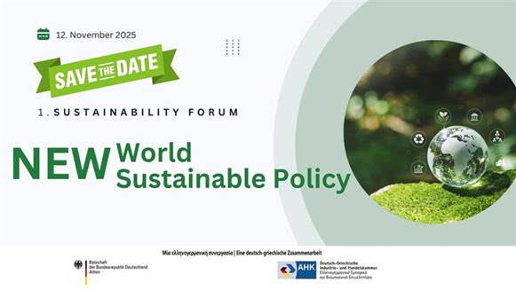 1ο Ελληνογερμανικό Sustainability Forum με θέμα: NEW World – NEW Sustainable Policy, που συνδιοργανώνουν, το Ελληνογερμανικό Επιμελητήριο και η Πρεσβεία της Ομοσπονδιακής Δημοκρατίας της Γερμανίας την Τετάρτη 12 Νοεμβρίου, στον Φάρο του Κέντρου Πολιτισμού Ίδρυμα Σταύρος Νιάρχος.