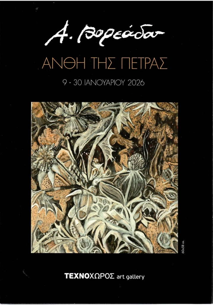 Η Αγγέλα Βορεάδου εκθέτει τα Άνθη της πέτρας στην Γκαλερί “Τεχνοχώρος” (Λεμπέση 12, Ακρόπολη, 11742, τηλ. 211-1823818) από 9 έως 30 Ιανουαρίου 2026.