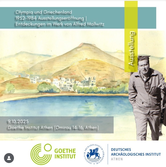 Ο Detlef Mallwitz, μαθητής από το 1957 έως την αποφοίτησή του το 1970, γιός του αρχαιολόγου Alfred Mallwitz – συνεργάτη του DAI (Deutsches Archäologisches Institut) επί 30 χρόνια – οργανώνει με το DAI και το Goethe Institut μία έκθεση από ακουαρέλλες με τίτλο “Olympia und Griechenland 1952-1984: Entdeckungen im Werk von Alfred Mallwitz“, που εγκαινιάζεται στις 9 Οκτωβρίου στο Goethe και θα παραμείνει ανοικτή για ένα μήνα, έως τις 9.11.2025, ενώ θα λειτουργεί παράλληλα με τις εκδηλώσεις εορτασμού των 150 χρόνων των ανασκαφών στην Αρχαία Ολυμπία. Κατά την διάρκεια της έκθεσης θα παρουσιάζονται slides του DAI και μία σειρά από φωτογραφίες, σχέδια και κείμενα από τον ίδιο και την Katja Sporn, Διευθύντρια του DAI Athen.