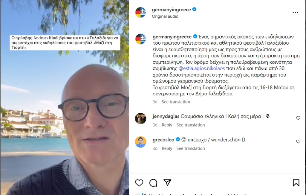 Παρών, εκτός από σχολεία και πολιτιστικούς φορείς, ήταν και o Πρέσβης της Γερμανίας (Germany in Greece) στην Αθήνα, υποστηρίζοντας -σε άψογα Ελληνικά!- έμπρακτα τη δύναμη του μαζί.