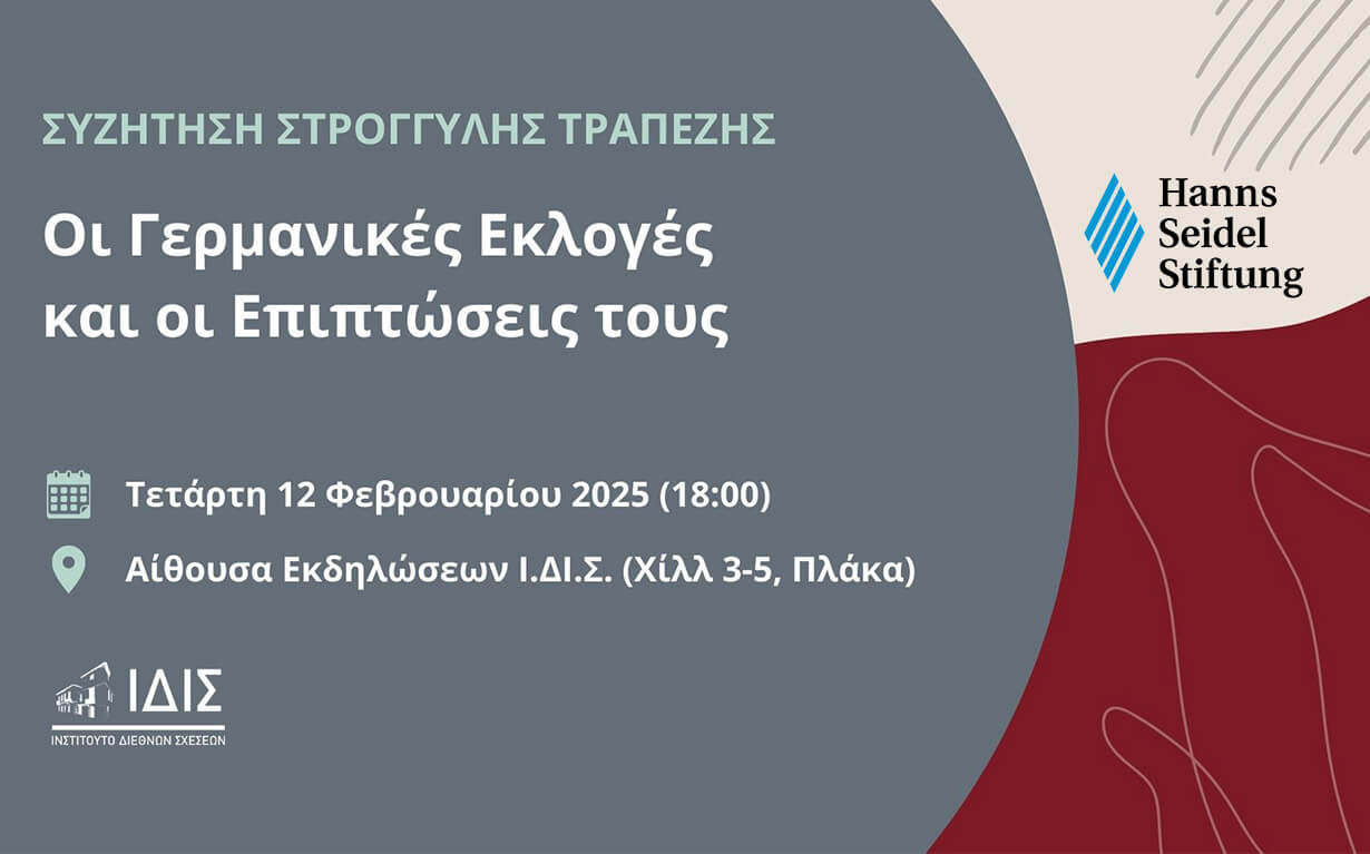 Συζήτηση στρογγυλής τραπέζης την Τετάρτη 12 Φεβρουαρίου 2025 (6:00 μ.μ.) στην Αίθουσα Εκδηλώσεων Ι.ΔΙ.Σ. (Χίλλ 3-5, Πλάκα).