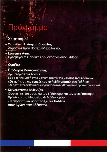 Την Παρασκευή 3 Απριλίου 2026 στο Τρικούπειο Πολιτιστικό Κέντρο το Μεσολόγγι τίμησε την Γαλλία στο πλάισιο της σειράς εορτασμών με τίτλο