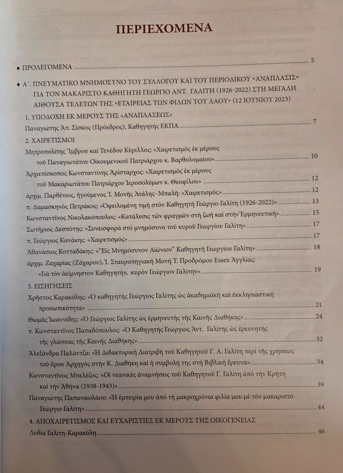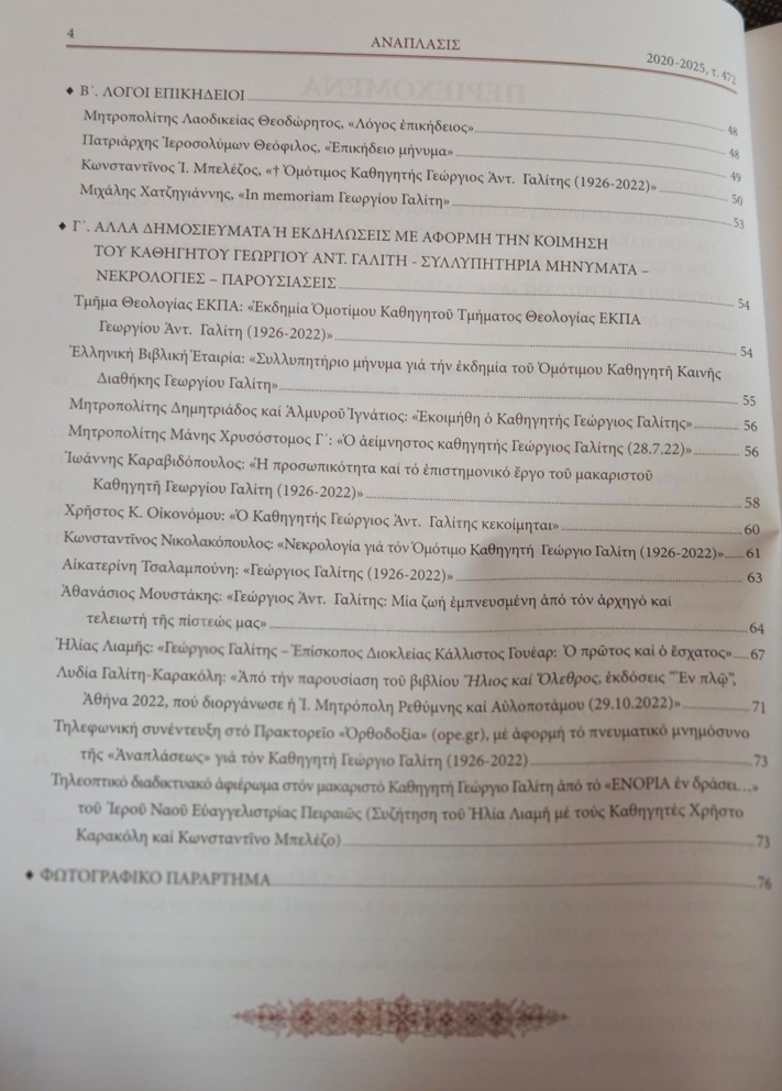 Με αφορμή την συμπλήρωση 100 χρόνων από την γέννηση του Γεωργίου Γαλίτη ο Ορθόδοξος Σύλλογος “Ανάπλασις”, που ιδρύθηκε το 1886 και εκδίδει το ομώνυμο περιοδικό, του αφιέρωσε το τεύχος 472.