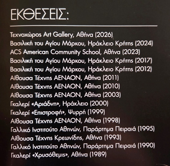 Έχει στο ενεργητικό της πολλές ατομικές εκθέσεις αλλά έχει λάβει μέρος σε πολλές ομαδικές και θεματικές εκθέσεις, ενώ έργα της βρίσκονται σε ιδιωτικές συλλογές.