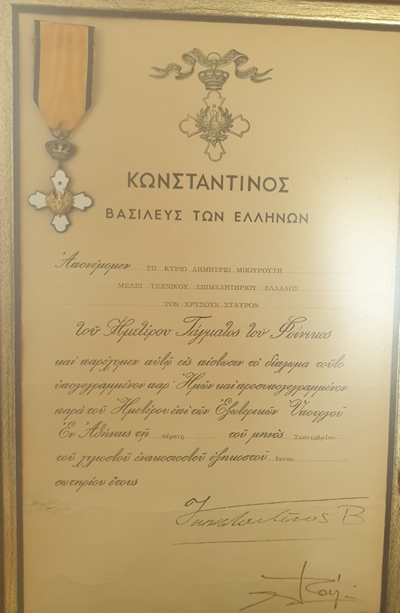 απονομή του Χρυσού Σταυρού στον σύζυγό της, Δημήτριο Μπουρούτη