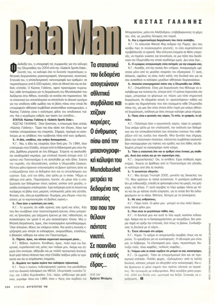 Για τους λάτρεις της στατιστικής, ο Κώστας Γαλάνης στο OneMan