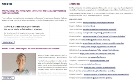 Ο Ρόναλντ Μαϊνάρντους δημοσίευσε την 1.4.2026 ένα άρθρο στην αγγλική έκδοση της εφημερίδας “Καθημερινή” (ekathimerini.com) σχετικά με την μάχη που δίνεται για την σωτηρία της ελληνικής υπηρεσίας της DW. Το άρθρο δημοσιεύτηκε και στα ελληνικά την αμέσως επόμενη ημέρα: