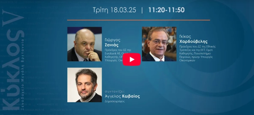 Ο Άγγελος Κωβαίος συντόνισε στο πλαίσιο του συνεδρίου του Κύκλου Ιδεών “Η Ελλάδα Μετά VIII” μία συζήτηση με τον Γιώργο Ζαννιά, Πρόεδρο του ΔΣ της Eurobank και τον Γκίκα Χαρδούβελη, Πρόεδρο του ΔΣ της Εθνικής Τράπεζας αλλά και της ΕΕΤ.