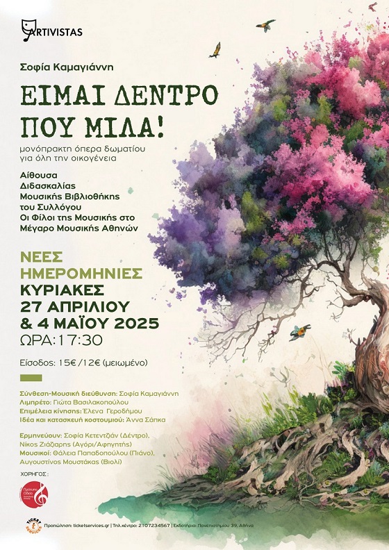 Μήπως, τελικά, ο άνθρωπος είναι ένα δέντρο που ξέχασε τις ρίζες του; Η παράσταση αποτελεί έναν αντίλογο στην αποξένωση του ανθρώπου από το φυσικό του περιβάλλον αναδεικνύοντας την ανάγκη μας να επανασυνδεθούμε με όσα μας θρέφουν- κυριολεκτικά και μεταφορικά. Άνθρωποι όλων των ηλικιών καλούνται για να ζήσουν μια μοναδική εμπειρία σύνδεσης και ενσυναίσθησης, με έντονο λυρισμό και ρυθμικό παλμό, σε μια μοντέρνα μουσική φόρμα.Εσείς, έχετε σταθεί ποτέ πραγματικά μπροστά σε ένα δέντρο; Έχετε ακούσει τη δική του φωνή; (περισσότερα…)