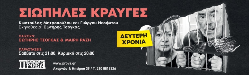 Οι «ΣΙΩΠΗΛΕΣ ΚΡΑΥΓΕΣ» είναι η θεατρική σύνθεση από «Τα Παπούτσια» της Κωστούλας Μητροπούλου και το «Ψιτ Μανώλη..!!» του Γιώργου Νεοφύτου που παρουσιάστηκε με μεγάλη επιτυχία κατά την χειμερινή περίοδο 2024-2025, στο θέατρο Πρόβα. Οι «ΣΙΩΠΗΛΕΣ ΚΡΑΥΓΕΣ» είναι ένα από τα πιο σημαντικά νεοελληνικά έργα που μετά από την μεγάλη επιτυχία του, θα συνεχίσει για δεύτερη χρονιά, από τις 4 Οκτωβρίου, στο θέατρο Πρόβα.