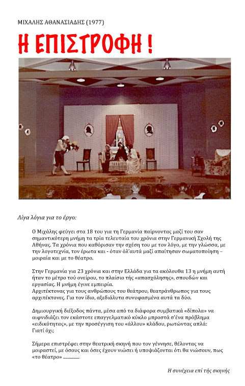 Όλα βέβαια, αυτά δεν τα ξέρουμε απ’ έξω. Υπάρχουν σε ένα καταπληκτικό τόμο με τίτλο «1980-2010: 30 Χρόνια Θέατρο» που τον βρίσκετε στο site μας στην ενότητα «Εκδόσεις / Γερμανική / 30 Χρόνια Θέατρο».