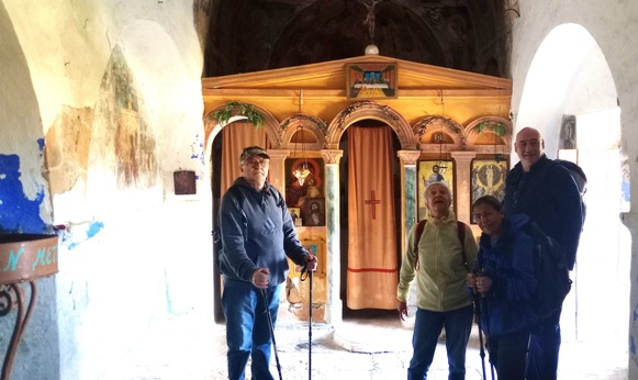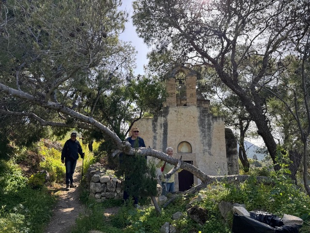 Η πρώτη λιακάδα εδώ και βδομάδα τουλάχιστον. Φυσάει βοριάς, ανεκτά.Πέρνουμε το μονοπάτι που περιτριγυρίζει το ύψωμα. Πρώτο πρώτο εκκλησάκι ο Αγ. Στέφανος. Φυσικά σταματάμε λόγω …Στέφανου.