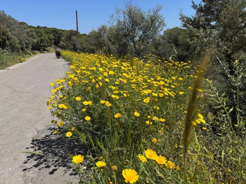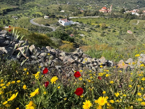 Ωραίες θέες ένα γύρω, μαργαρίτες, παπαρούνες, γαιδουράγκαθα, χορτάρι πολύ.