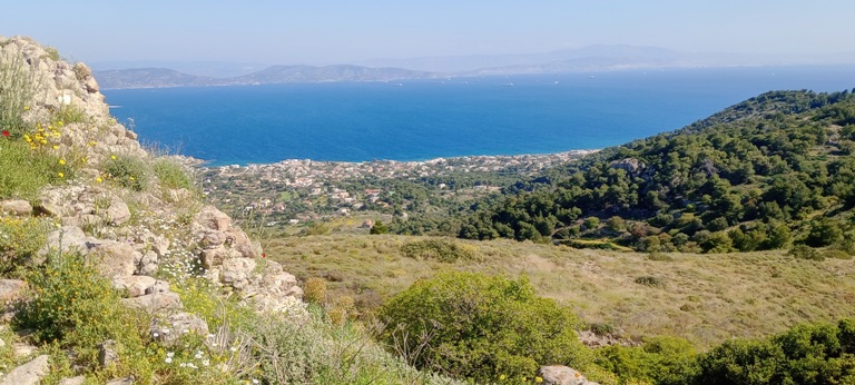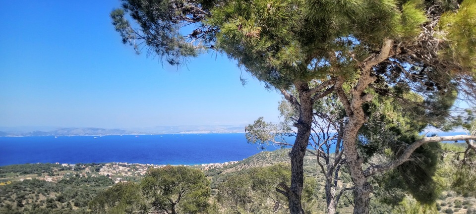 Φτάνουμε στην κορυφή με τον δίδυμο Αη Γιώργη – Αη Δημήτρη. Ο Σαρωνικός στο βάθος ένα γύρω.