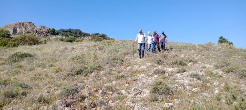 Βρίσκουμε αχνό μονοπάτι που πηγαίνει στην ράχη, ανατολικά προς ερείπια ανεμόμυλων.