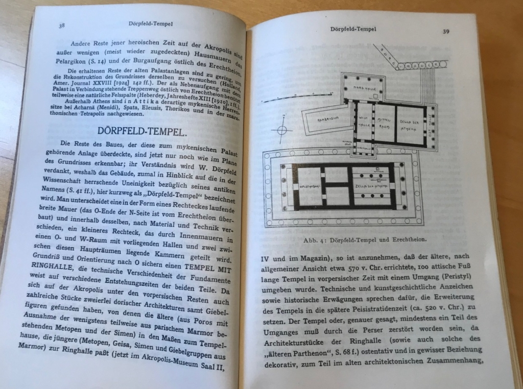 Όπως υποδεικνύει ο Dr. Otto Walter αναγνωρίζονται τα ίχνη ενός τμήματος ενός ναού, που καταστράφηκε από τους Πέρσες και που μέρος του σκεπάστηκε από το Ερέχθειον, και τον ονομάζει χάριν συντομίας “Dörpfeld Tempel“.