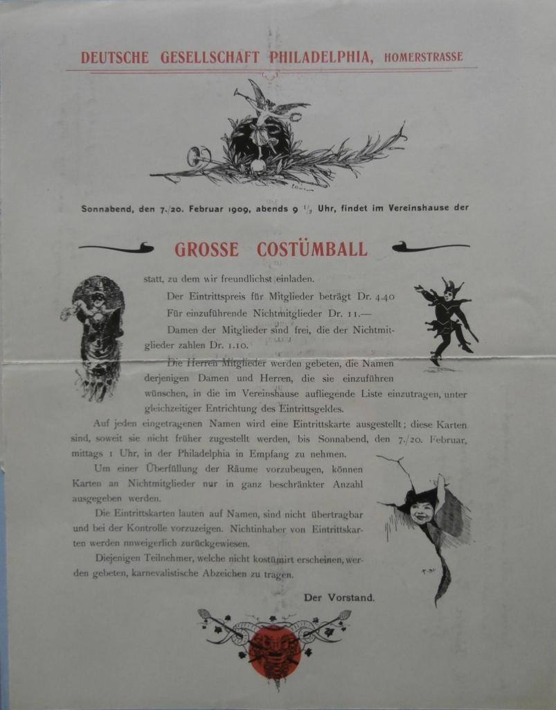 Auf der ebenfalls neu entdeckten, einzig bekannten Fotografie der Innenräume der ehemaligen „Deutschen Gesellschaft Philadelphia“, konnte die Vortragende sogar mehrere ehemalige Mitglieder eindeutig identifizieren. Zahlreiche ergänzende Quellen ließen die gesellschaftlichen Zusammenkünfte um 1909 wieder lebendig werden.