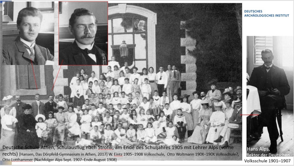 Η Katharina Brandt εντόπισε τρεις καθηγητές στην γνωστή φωτογραφία από την εκδρομή στο Στροφίλι: W.Eintz (1905-1908), Otto Woltmann (Volksschule?), Otto Lotthammer (που διαδέχθηκε τον Hans Alps, Rektor der Deutschen Volksschule 1901-1907, που φαίνεται εκτός της φωτογραφίας δεξιά).