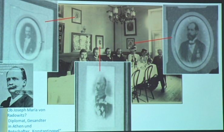 “Was nun die am Tisch sitzenden Herren auf dem Bild anbelangt, ist die Zuweisung etwas vage. Drei der Herren meine ich mit Lehrern der Deutschen Schule Athen in Zusammenhang bringen zu können. Dabei kann ich aber die Namen der Herren links (auf der PPT) oben nicht mit Sicherheit bestimmen.
