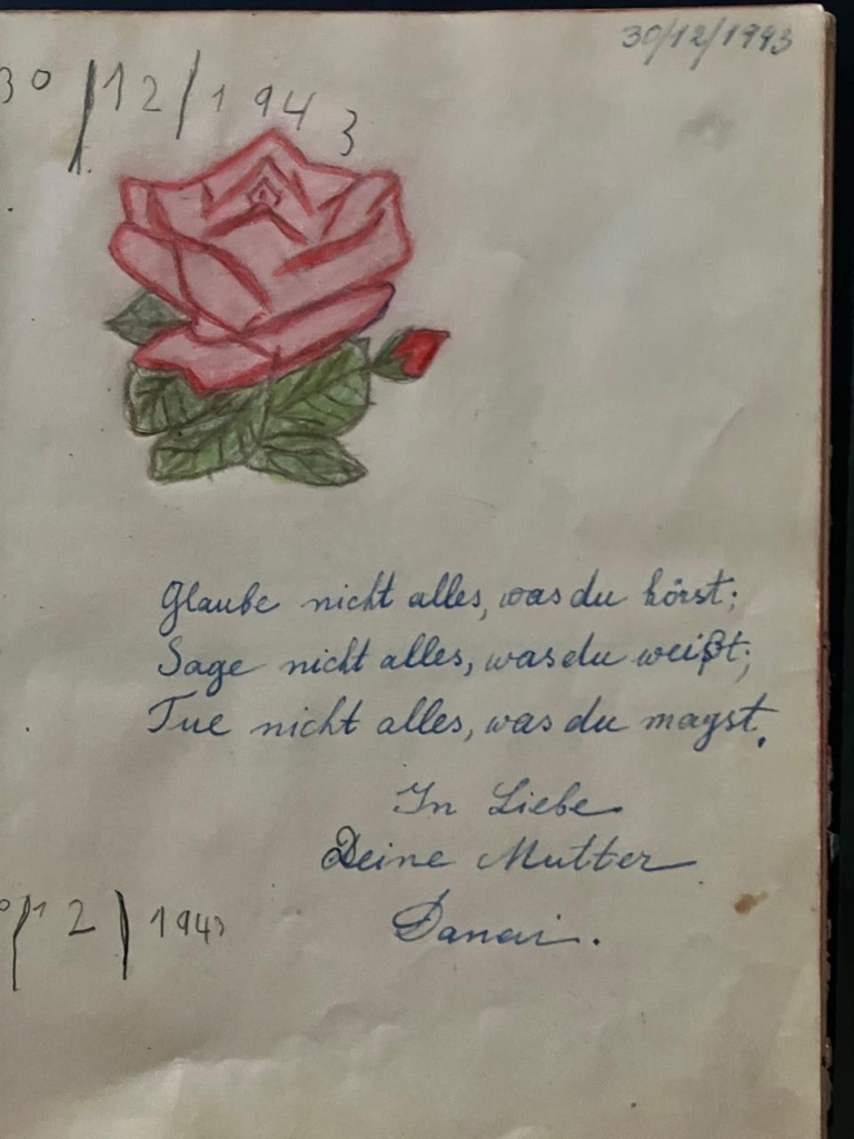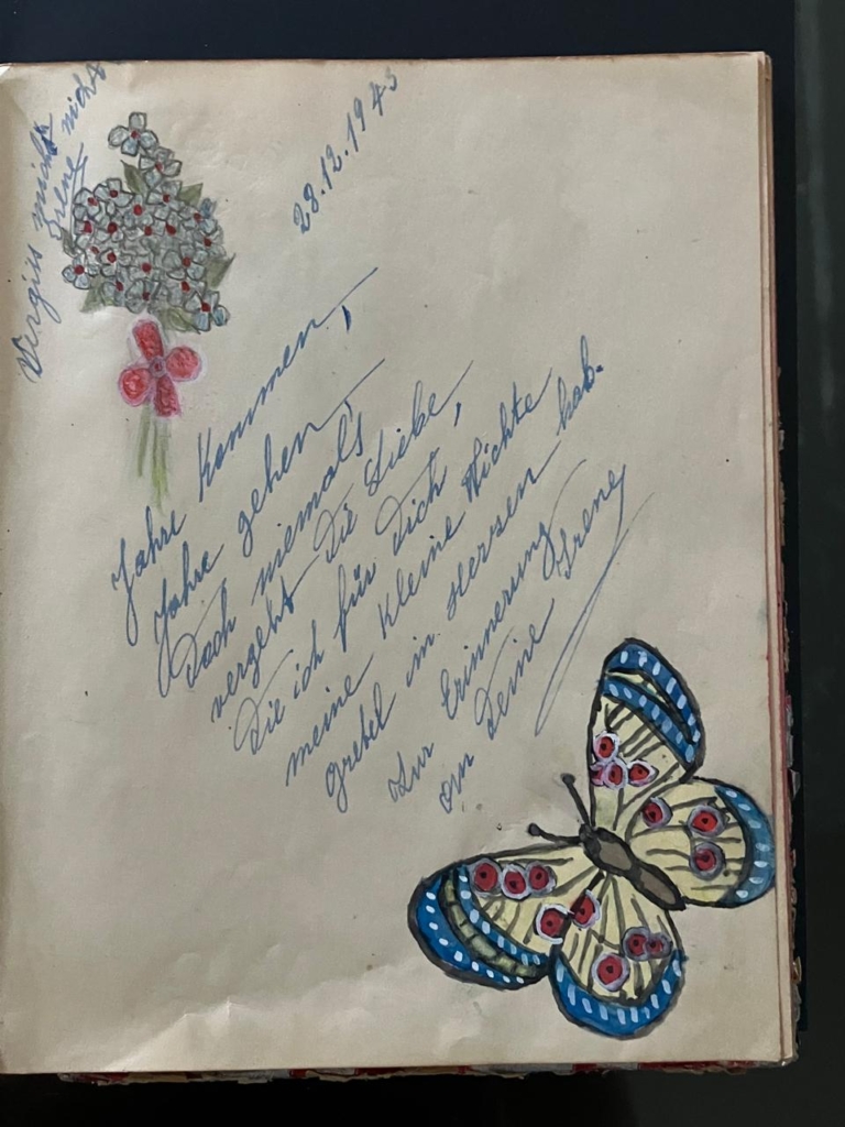 Ανάμεσα στα ονόματα βλέπουμε τον αδελφό της Stefan, μαθητή και αυτός της Γερμανικής και τους γονείς της να συμπληρώνουν τις αφιερώσεις των: