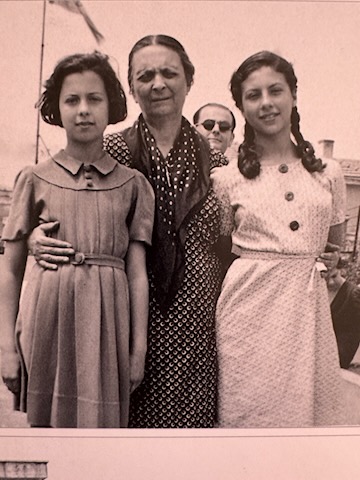 η Πηνελόπη αριστερά, η Αλίκη δεξιά και η γιαγιά τους στη μέση (πηγή: Μαρί Λουίζ Νικολαΐδη, κόρη της Αλίκης Περρωτή Κωνσταντοπούλου)