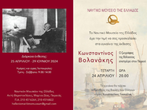 Στην έκθεση παρουσιάζονται τα έργα από τη συλλογή του Ιδρύματος Αικατερίνης Λασκαρίδη, καθώς και του Πολεμικού Ναυτικού, του Δήμου Πειραιώς, της οικογένειας Ευάγγελου Ηλ. Αγγελάκου και του Ναυτικού Μουσείου Ελλάδος. Η έκθεση θα είναι επισκέψιμη για το κοινό έως και τις 29 Ιουνίου 2024. Τα εγκαίνια της έκθεσης θα τελέσει ο Πρόεδρος της Βουλής των Ελλήνων Κωνσταντίνος Τασούλας. Ναυτικό Μουσείο Ελλάδος, Ακτή Θεμιστοκλέους, Μαρίνα Ζέας, Πειραιάς |