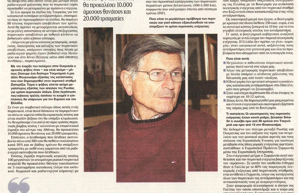 Θανάσης Γεράνιος: “Το μεγαλύτερο πρόβλημα των πυρηνικών είναι τα απόβλητα”