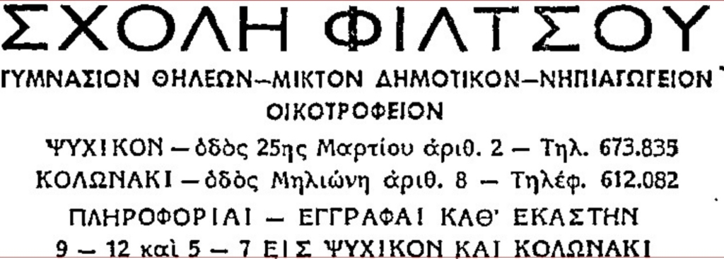 η ανακοίνωση είναι από το φύλλο της 16/09/1961 της εφημερίδας “Ελευθερία”. |