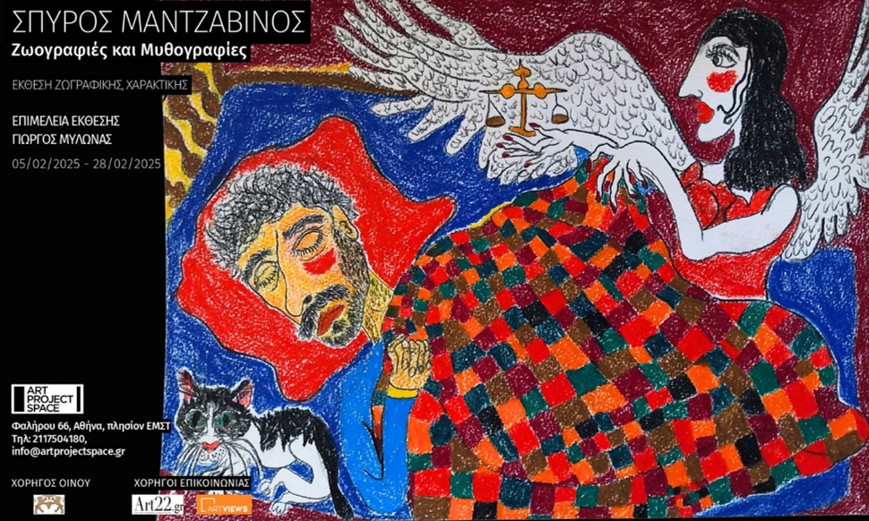 Έκθεση ζωγραφικής του Σπύρου ΜαντζαβίνουH Gallery Art Project Space παρουσιάζει την ατομική έκθεση ζωγραφικής και χαρακτικής του Σπύρου Μαντζαβίνου με τίτλο «Ζωογραφιές και μυθογραφίες» σε επιμέλεια του Ιστορικού Τέχνης Γιώργου Μυλωνά. Τα εγκαίνια της έκθεσης πραγματοποιήθηκαν την Τετάρτη 5 Φεβρουαρίου στις 19:00-22:00, με διάρκεια έκθεσης έως τις 28 Φεβρουαρίου 2025.