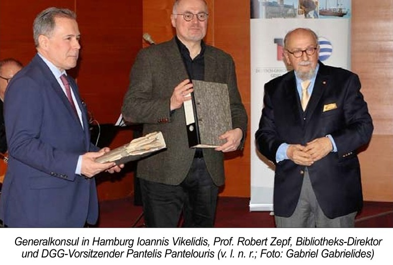 Η DGG-HH γιόρτασε πριν από 7 χρόνια τα 100 χρόνια από την ίδρυσή της και πριν λίγες ημέρες παρέδωσε το Αρχείο της στο Πανεπιστήμιο του Δήμου του Αμβούργου. “Το Αρχείο μας καθρεφτίζει την ιστορία των δύο κρατών μας των τελευταίων 100 χρόνων. Το γεγονός ότι οι ελληνο-γερμανικές σχέσεις, παρ όλα όσα μεσολάβησαν (παγκόσμιοι πόλεμοι, δικτατορίες, εξεγέρσεις, κρίσεις κλπ), παρέμειναν ζωντανές αποδεικνύει την σταθερή τους βάση” ανέφερε μεταξύ άλλων ο Παντελής Δείτε το άρθρο στην Griechenland Zeitung της 9.4.2025 (περισσότερα…) |