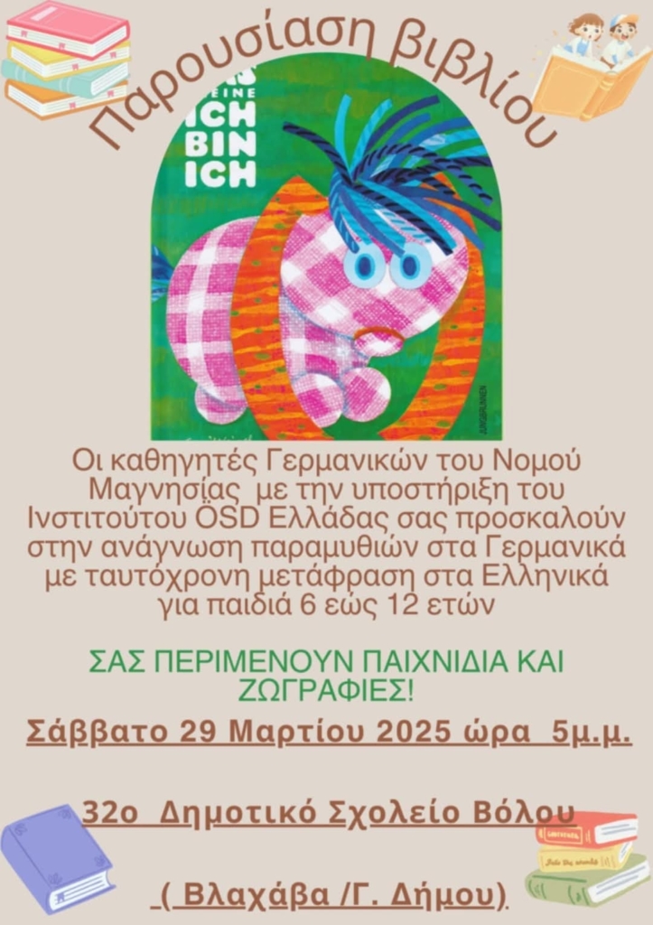 Ακολούθησαν διάφορες δραστηριότητες με τα παιδιά και συζητήσεις με τους εκπαιδευτικούς. Την οργάνωση της εκδήλωσης είχαν αναλάβει εκπαιδευτικοί του Σχολείου και καθηγητές Γερμανικών του Νομού Μαγνησίας. Το όλο εγχείρημα υποστηρίχτηκε από το Ινστιτούτο ÖeSD (Österreichisches Sprachdiplom) Ελλάδος. (περισσότερα…) |