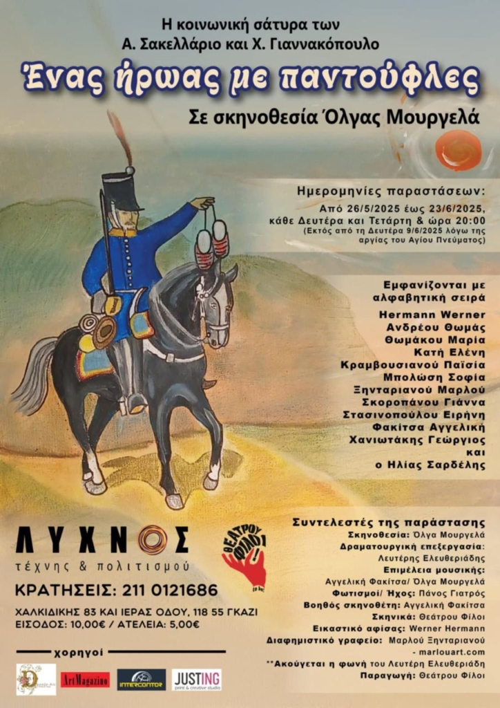 Ο στρατηγός Δεκαβάλλας, μετά την αποστρατεία περίμενε μνεία του ονόματός του, ικανοποίηση, καταξίωση βρήκε όμως μειωμένη τη σύνταξή του και τη σύζυγό του να προσπαθεί να τον προσγειώσει στην πραγματικότητα, παζαρεύοντας με τον παλιατζή τη στολή του, το ξίφος του, τα παράσημά του και ό,τι άλλο πολύτιμο γι’ αυτόν από τη στρατιωτική του ζωή, για να μπορέσουν να επιβιώσουν με αξιοπρέπεια. Η ικανοποίηση όμως ήρθε για τον Δεκαβάλλα με το στήσιμο του ανδριάντα του στην πλατεία μπροστά από το σπίτι του. Πίσω από αυτή την “τιμητική” κίνηση, όμως, κρύβονται πολιτικά και οικονομικά συμφέροντα, που οδηγούν τον ήρωα σε τραγικές καταστάσεις οι οποίες αναδεικνύουν τη φθορά των αξιών και την εκμετάλλευση της ανθρώπινης αξιοπρέπειας. Ο Werner Hermann, πρωταγωνιστεί σε μία παράσταση που σκηνοθετεί η Όλγα Μουρσελά και παίζεται: κάθε Δευτέρα και Τετάρτη από 26/5 έως 23/6, στις 20.00 στο Θέατρο “Λύχνος τέχνης και πολιτισμού”, Χαλκιδικής 83 & Ιεράς Οδού στο Γκάζι, τηλ 211 0121686 |