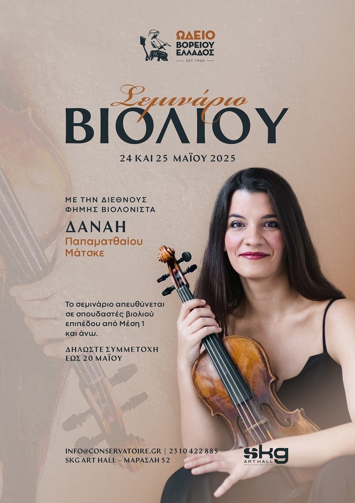 στις 24 και 25 Μαΐου στο Ωδείο Βορείου Ελλάδος και απευθύνεται σε σπουδαστές βιολιού από Μέση 1 και επάνω Δηλώσεις συμμετοχής έως 20 Μαΐου info@conservatoire.gr τηλ: 2310 422 885 – 2310 262 244 – 2310 760 778 |