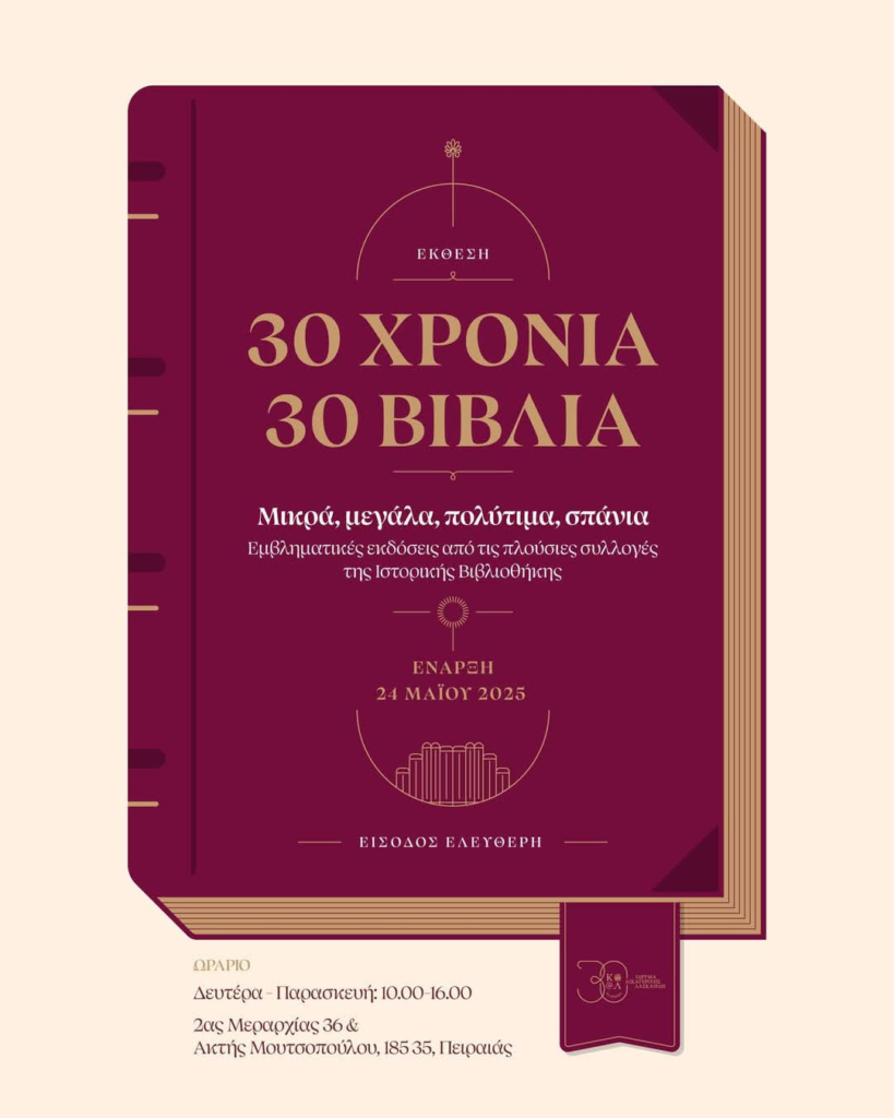 Μια διαδρομή στις σπάνιες συλλογές της Ιστορικής Βιβλιοθήκης. Βιβλία-μινιατούρες και περίτεχνες εκδόσεις αποκαλύπτουν ιστορίες από την περιηγητική παράδοση, τη θρησκευτική γραμματεία, την αρχαιοελληνική γνώση, τον Διαφωτισμό και την Ελληνική Επανάσταση. Βιβλία που ταξίδεψαν στον χρόνο – και φτάνουν σε εσάς. Η νέα περιοδική έκθεση φωτίζει τη διαχρονική αξία του βιβλίου, μέσα από 30 εμβληματικές εκδόσεις. Είσοδος ελεύθερη με προκράτηση θέσης Εγγραφές εδώ: https://bit.ly/4jdNLvb Open House I – Κυριακή 25 Μαΐου Ξεναγήσεις: 12:00 • 13:00 • 18:00 • 19:00 Ιστορική Βιβλιοθήκη – 2ας Μεραρχίας 36 & Ακτής Μουτσοπούλου, Πειραιάς |