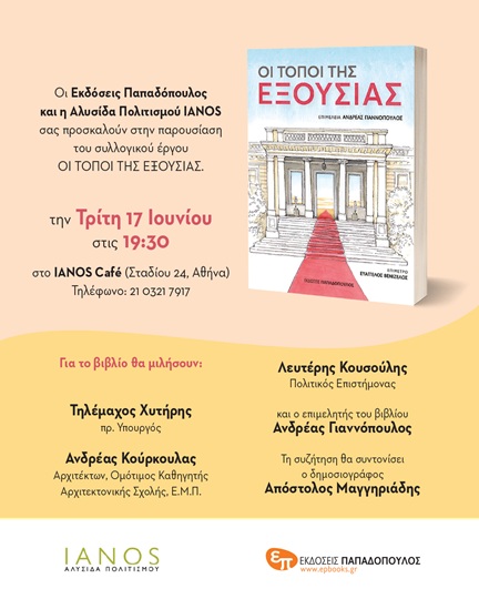 «Οι Τόποι της εξουσίας» από τις “Εκδόσεις Παπαδόπουλος” στις 17 Ιουνίου στον Ιανό