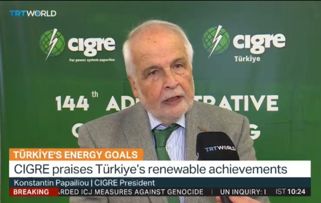 Επιδοκίμασε την προσπάθεια της “CIGRE Türkiye” αναφέροντας ότι διαπιστώνει με χαρά ότι η Τουρκία υποστηρίζει τις δραστηριότητες και την ανάπτυξη της CIGRE ενθαρρύνοντας νέους ανθρώπους από τον χώρο των πανεπιστημίων να συμμετέχουν ενεργά. Αναφέρθηκε στην Ελλάδα χρησιμοποιώντας τον όρο “Ελλάδα” στα ελληνικά, όμως κάποια τμήματα των δηλώσεών του δεν μεταδόθηκαν. |