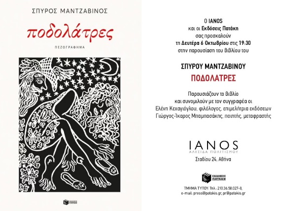 Παρουσίαση του βιβλίου του Σπύρου Μαντζαβίνου «Ποδολάτρες» στο βιβλιοπωλείο “IANOS”