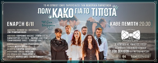 Ένα έργο που είναι ένας ύμνος στην αγάπη , στη φιλία και στον ρομαντικό γνήσιο έρωτα, κι ενώ υπάρχει μια προδοσία κατά τη διάρκεια του έργου , ο συγγραφέας δίνει ένα αίσιο τέλος , μακριά από τα σκοτάδια ενός διαφθαρμένου νου. Μετάφραση – Θεατρική Διασκευή: Νίκη Τριανταφυλλίδη Σκηνοθεσία – Μουσική Επιμέλεια – Χορογραφία: Ζωή Τριανταφυλλίδη 41 STREET CAFE – THE ART CONCEPT Αντρέα Λεντάκη 41, Υμηττός Ticket Services: – online: www.ticketservices.gr – τηλεφωνικά: 2107234567 – εκδοτήριο: Πανεπιστημίου 39, Αθήνα |