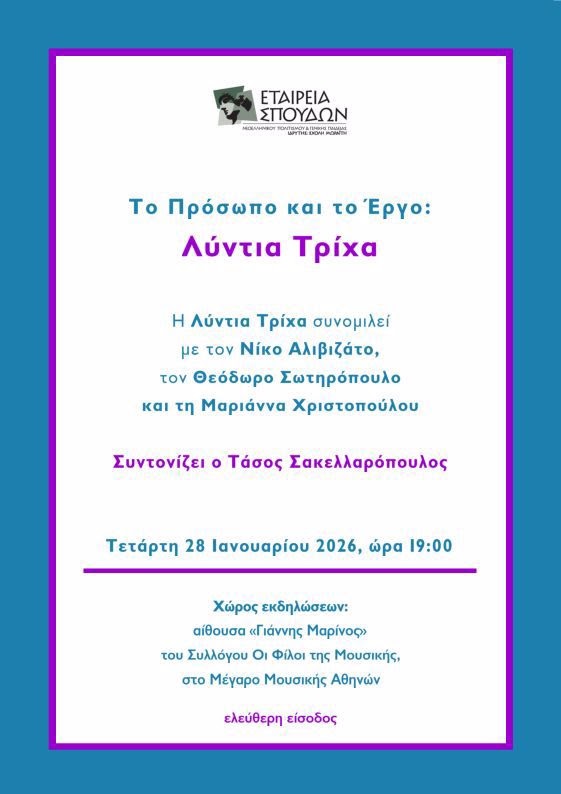 “Το πρόσωπο και το έργο: Λύντια Τρίχα” την Τετάρτη 28 Ιανουαρίου 2026