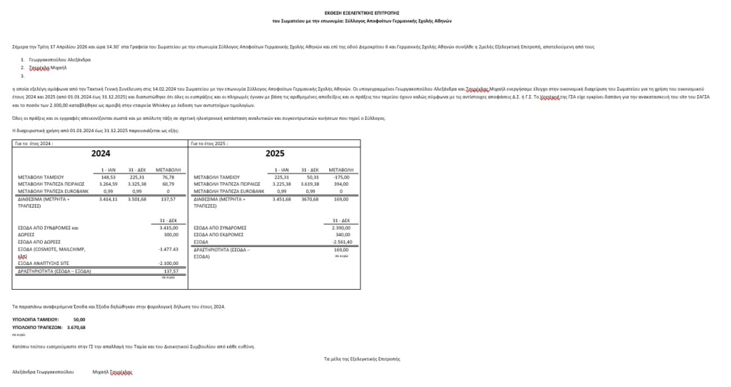 Με την μεγαλύτερη συμμετοχή των τελευταίων 20 χρόνων διεξήχθησαν οι Εκλογές και η Γενική Συνέλευση που προηγήθηκε. Καταμετρήθηκαν 317 ψηφοδέλτια και οι υποψήφιοι ήταν περισσότεροι από κάθε άλλη φορά και όπως επεσήμανε ο Στέφανος Μίτμαν, καταγράφηκαν και οι περισσότεροι σταυροί προτίμησης από κάθε άλλη φορά.