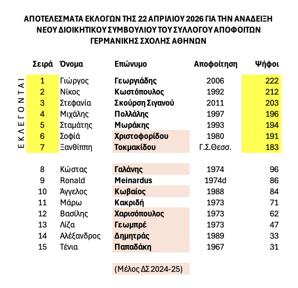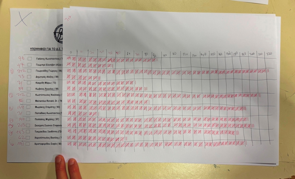Ο Στέφανος Μίτμαν σχημάτισε τον πίνακα σημειώνοντας με κίτρινο χρώμα όσες και όσους εξελέγησαν και με ροζ όσους μετείχαν από το απερχόμενο συμβούλιο.