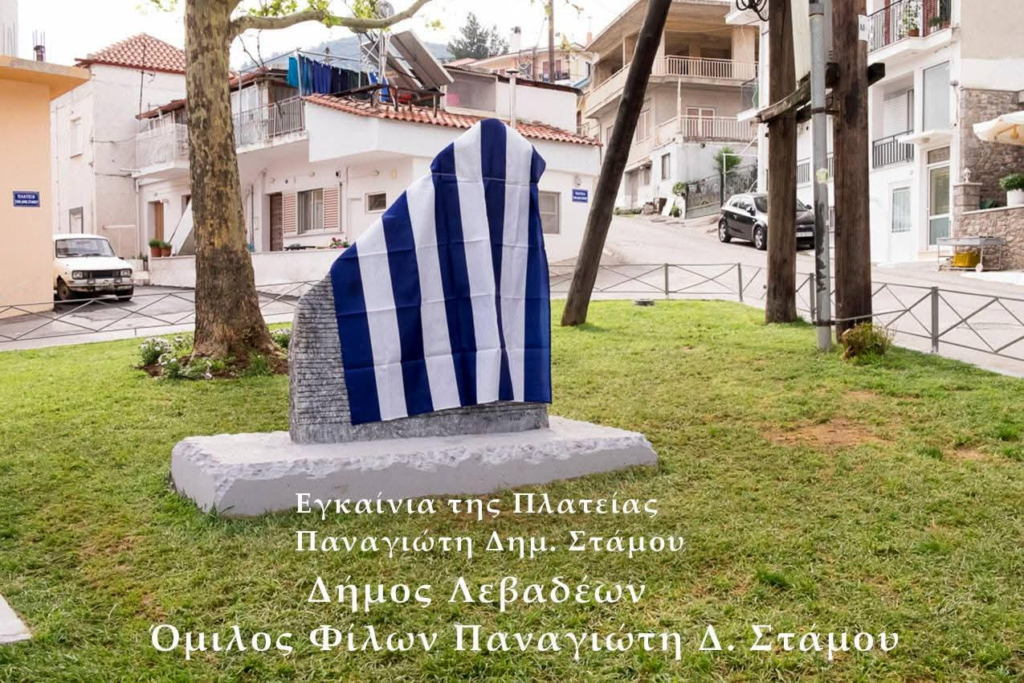 Ο Χρήστος Αναγνώστου μας έστειλε την είδηση: Την Κυριακή 8 Απριλίου 2018 έκλεισαν δυο χρόνια χωρίς τον Παναγιώτη Δ. Στάμο. Ο Δήμος Λεβαδέων, ως δείγμα τιμής και σεβασμού στην προσφορά του στα Ελληνικά γράμματα και την Εκπαίδευση, ονόμασε την ανώνυμη πλατεία, μπροστά στο σπίτι του στο Ζαγαρά σε «Πλατεία Παναγιώτη Δημ. Στάμου», αναμορφώνοντάς την ταυτόχρονα, ενώ ο Όμιλος Φίλων Παναγιώτη Δ. Στάμου τοποθέτησε σε αυτήν, προς τιμήν του, αναθηματικό βράχο με το μονόστιχό του «Κληρονόμος τῆς στιγμῆς ἡ αἰωνιότητα» ως επίγραμμα.