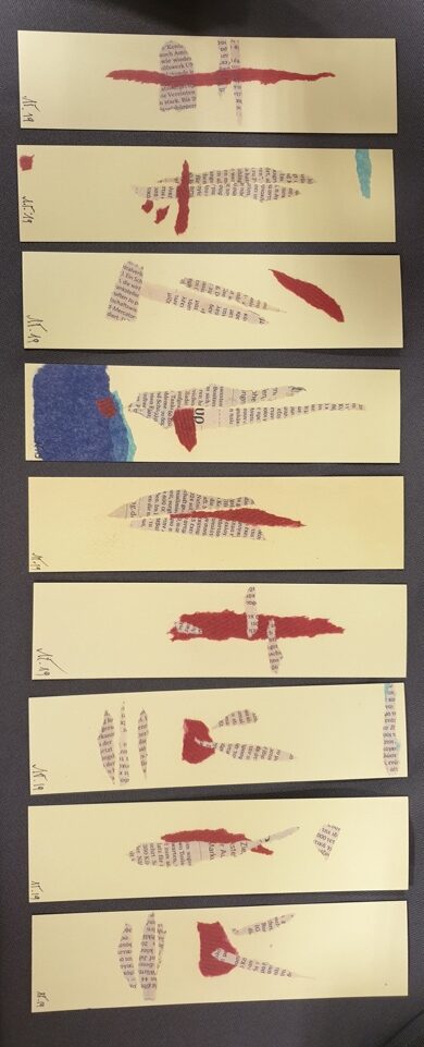 Οι σελιδοδείκτες είναι κολάζ από ελληνικές και γερμανικές εφημερίδες στο πνεύμα της Begegnung, που θέλουμε να κατευθύνει το σχολείο.
