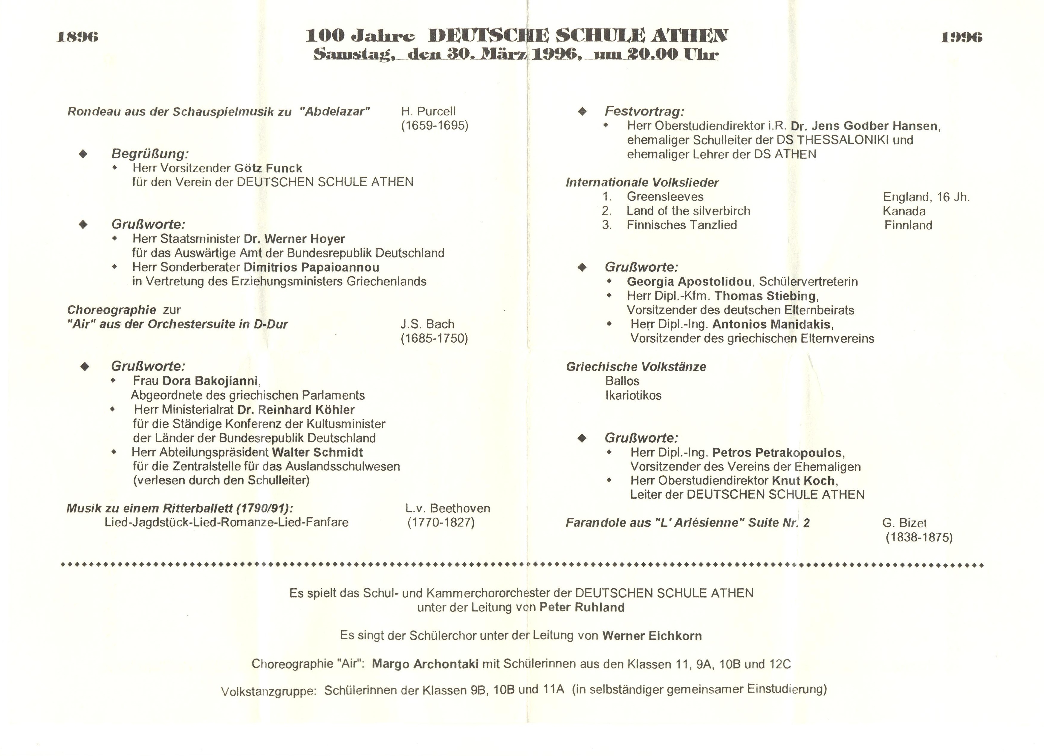 Το αρχείο περιέχει τον «Δεκάλογο του μαθητή της Γερμανικής Σχολής Αθηνών”, που ιδρύθηκε το 1896, διέκοψε την λειτουργία της το 1944 λόγω του Πολέμου και επαναλειτούργησε μετά από 12 χρόνια, το 1956. Το κείμενο τονίζει την εκτίμηση και την εμπιστοσύνη που είχε κερδίσει η Σχολή στην ελληνική κοινωνία, εξηγώντας ότι οι γονείς επιθυμούν τα παιδιά τους να φοιτήσουν εκεί όχι μόνο για τις γυμνασιακές σπουδές, αλλά και για τη γενικότερη μόρφωση, την εκμάθηση της γερμανικής γλώσσας και κουλτούρας, και την διαμόρφωσή τους σε καλούς ανθρώπους.